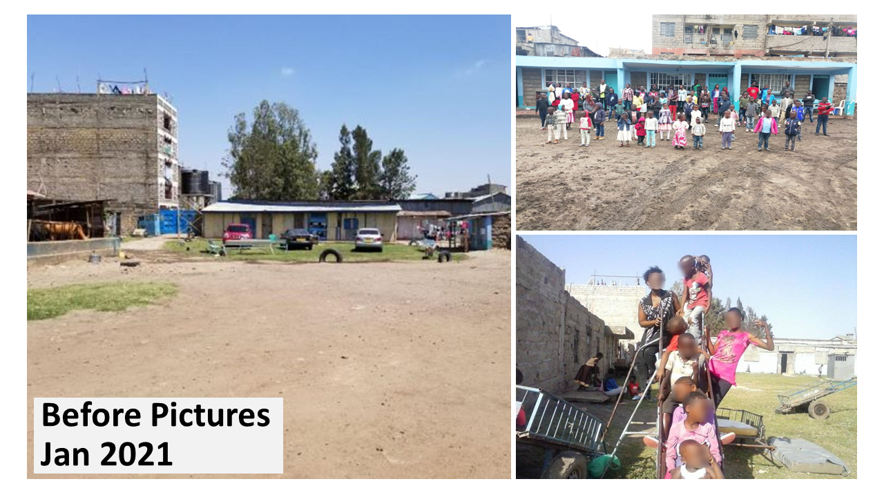 - Flomina children’s home in Kayole, Embakasi which has 79 children aged between 4 months and 18 years old, catering for homeless and abandoned children, currently with only one worn out slide as their play area.